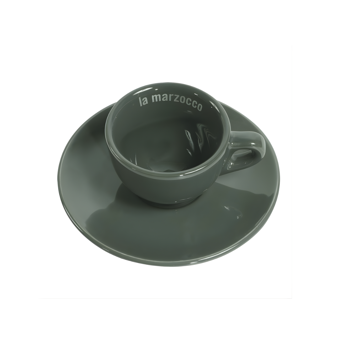 The La Marzocco Espresso Cup in Grey is a finely crafted porcelain cup designed to enhance the experience of enjoying a perfect shot of espresso. With its thick walls, this cup ensures excellent heat retention, keeping your espresso at the ideal temperature for longer. The elegant grey finish, adorned with the La Marzocco logo, adds a touch of sophistication to your coffee service. This cup is dishwasher safe, making it easy to clean and maintain. Whether you're serving guests or savoring your own espresso, this cup is a beautiful addition to any coffee setup.