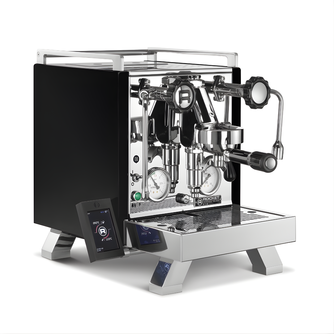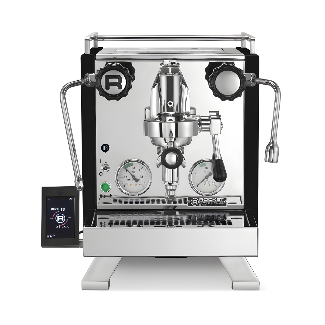 Now at its second generation, the R “Cinquantotto” shows a facelifted body that continues the design philosophy of the previous generation. The main visual change with this new machine comes with the new feet, much more linear in the design compared to the previous ones. Another new feature is a multi-function PAD (that’s how they call it at Rocket). Just like the previous one, this new PID is not integrated into the coffee machine like in other models of its class which we appreciate since you can still choose whether to have it plugged in or not. Rocket told us that they kept this option in order to give the possibility to the owner to make use of the functionalities when needed but to also enjoy the simplicity of the design when the PAD is not needed.