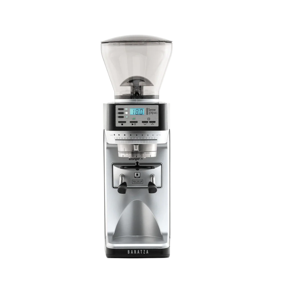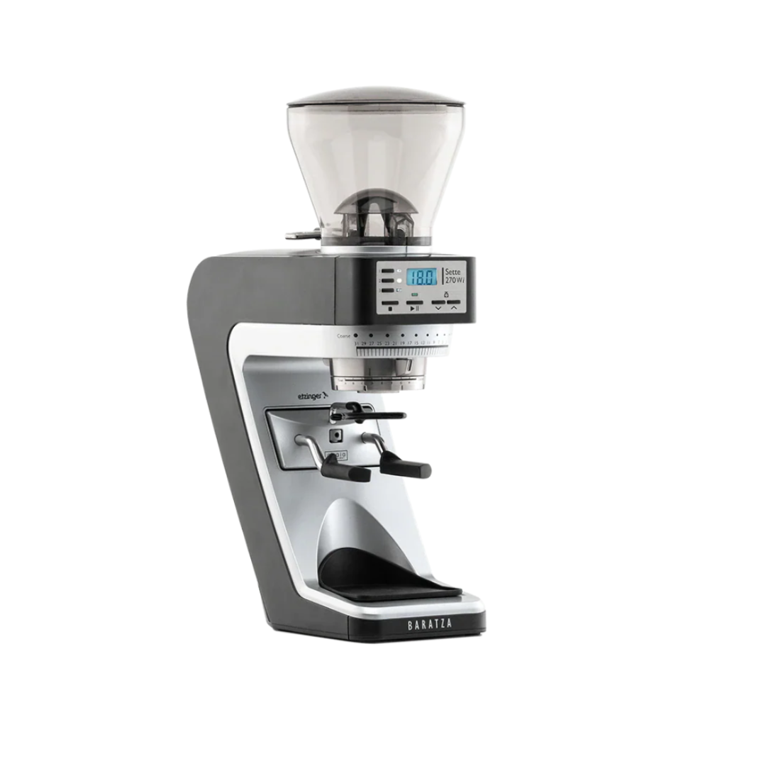 Baratza Sette 270Wi Series debuts a revolutionary new grinding technology. Designed and perfected in Liechtenstein over a period of 8 years, this technology sets a new standard in simplicity, efficiency, and durability. This new mechanism has the outer burr rotate and the inner burr is fixed, a truly revolutionary design. The design of this mechanism doubles the efficiency of similarly sized grinders. Coffee passes straight through the grinder, vertically, and drops directly into the grounds bin or your portafilter. The Sette has a macro/micro adjust for grind size, as well as 3 programmable settings for dosing. These combined features offer the user incredible repeatability. A unique, built-in, convertible device holder allows the user to grind directly into a portafilter, the supplied grounds bin, or most of the popular brewing devices. This 270Wi grinder was designed using the weighing technology of Acaia, giving precise and accurate weight based dosing, with the revolutionary ability to grind by weight directly into a portafilter. This is a breakthrough in grinding technology! In line with Baratza’s focus on process improvement and quality, and our ongoing efforts to improve the functionality of our grinders, we have made significant improvements with the weight accuracy and repeatability of the Sette 270W. The updated grinder is called the Baratza Sette 270Wi.