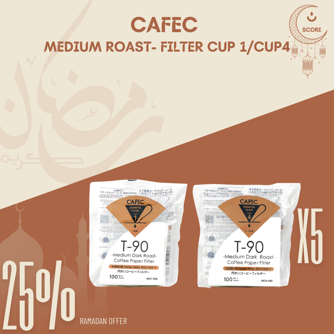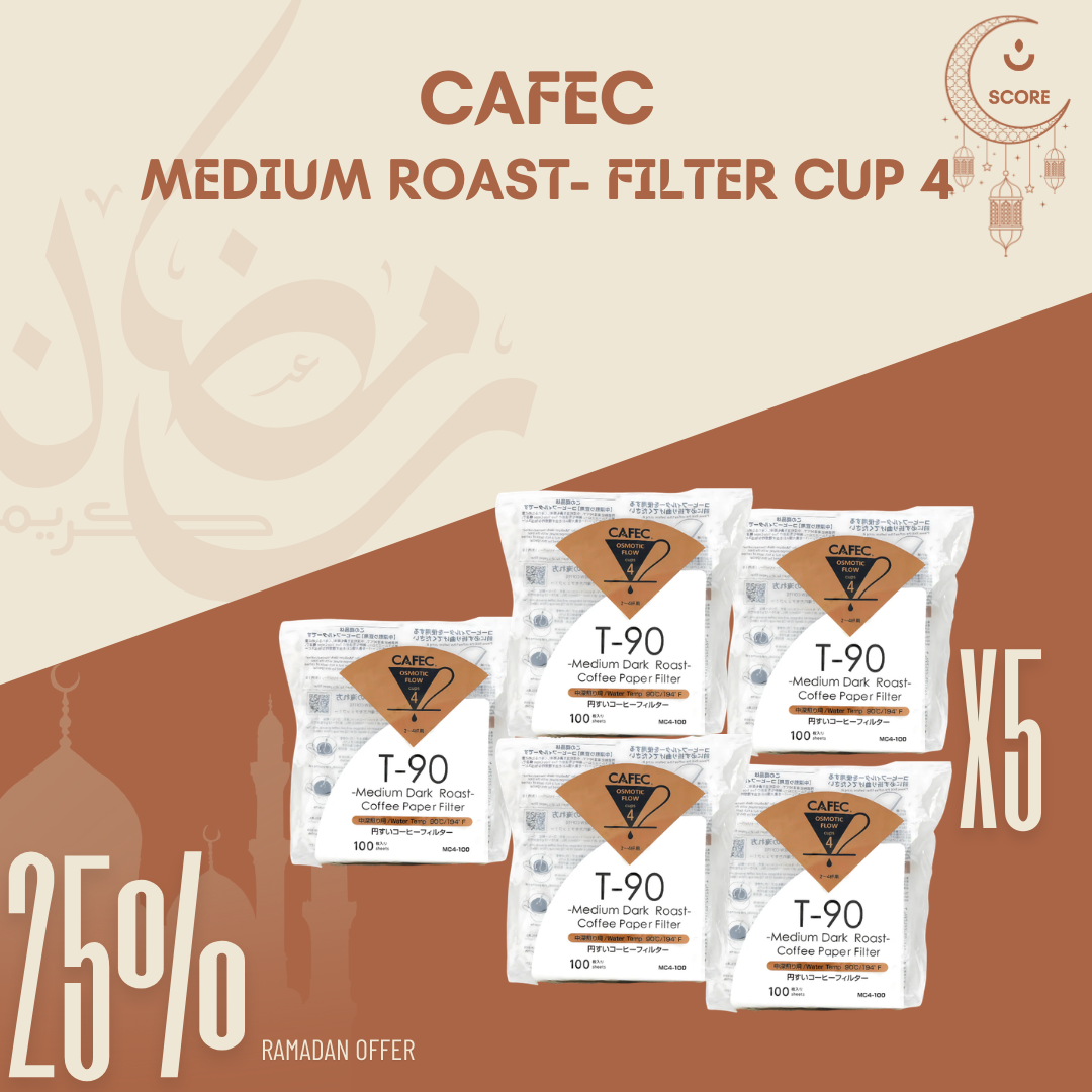 Unlike standard paper filters, CAFEC Roast-Specific Paper Filters are designed according to roast level (Light / Medium / Dark) to give perfect flow resistance for each roast profile.