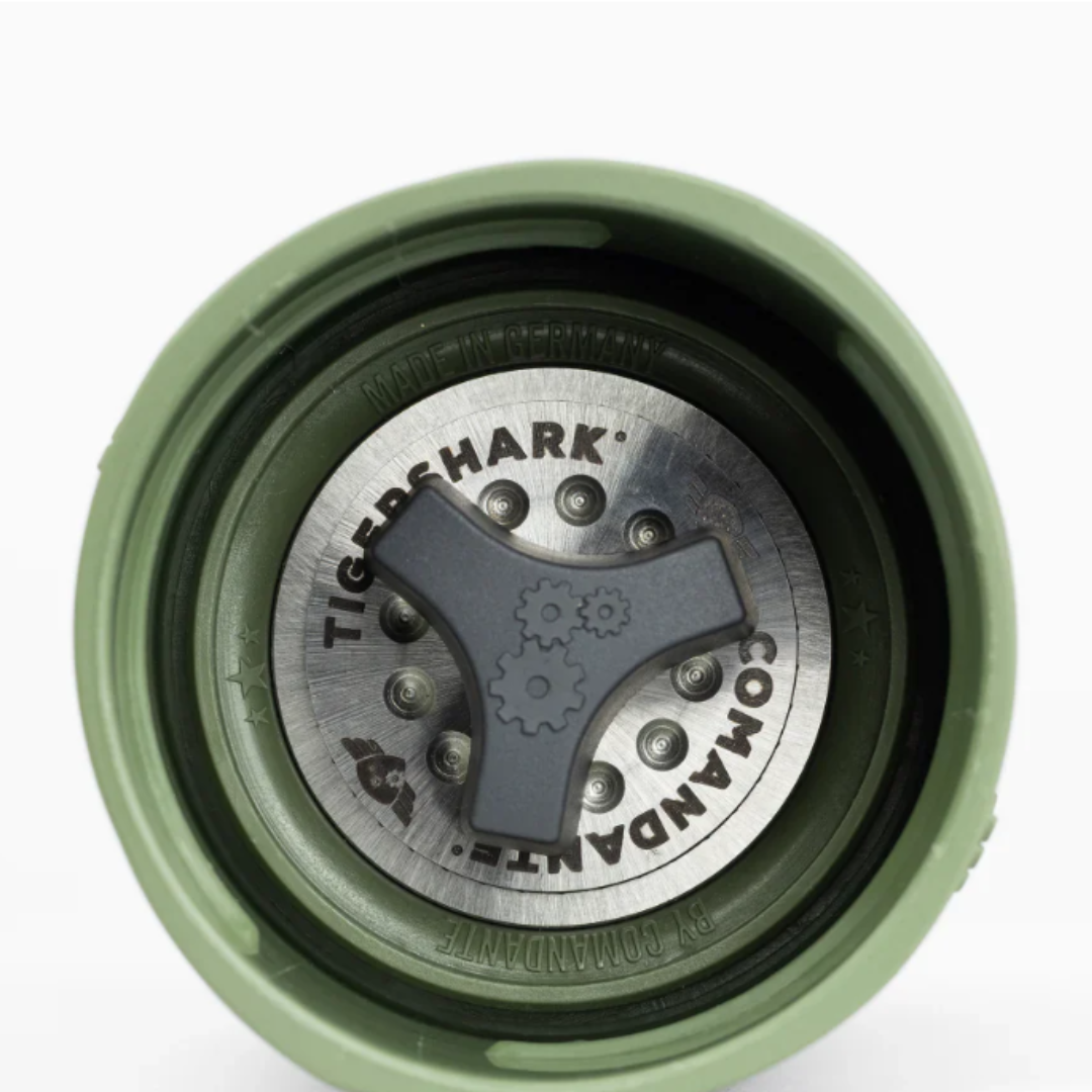 FOREST is equipped with our pioneering COMANDANTE TIGERSHARK® burr, optimised for the great outdoors. The Double Shark Tips create a double-cut action to efficiently deal not only with dense, light roasted specialty coffee, but also other semi-elastic materials with reduced brittleness, such as grains used for porridge or flat breads. The coating-free edge and blade structure, coupled with this steel’s extraordinary toughness and extremely high edge retention capabilities, will ensure a lifetime of performance.